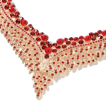 2 Piece Set Red Crystal Chandelier Design Necklace and Earrings in Gold Tone 19 with 3 inch Extender