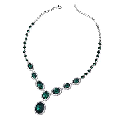 Simulated Emerald and Crystal Statement Necklace and Drop Earrings 20 Inch with 2 Inch Extender