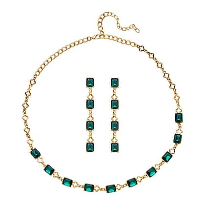 Add a pop of colour to your jewellery collection with this Simulated Green Topaz Stationed Necklace and Earrings Set. The necklace features a delicate chain with stunning green topaz stones stations, while the matching earrings complete the set. The simulated green topaz stones are of the highest quality, giving the group an elegant and timeless look. In addition, the collection is versatile, making it perfect for everyday wear and special occasions. The Simulated Green Topaz Stationed Necklace and Earrings Set is a unique and beautiful addition to your jewellery collection that will turn heads.