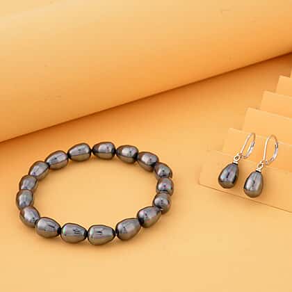 2 Piece Set - Tahiti Colour Shell Pearl Bracelet and Lever Back Earrings