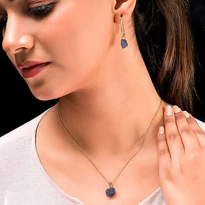 2 Piece Set Raw Tanzanite December Hoop Earrings and Pendant in Gold Plated Sterling Silver