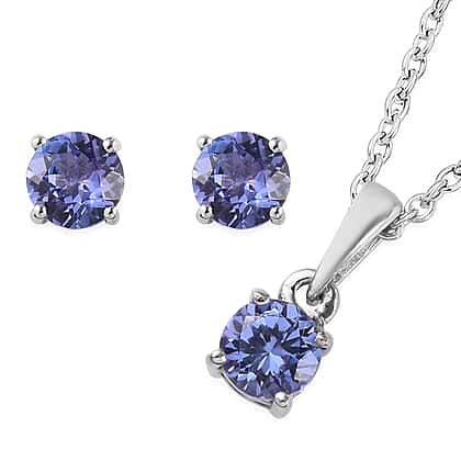 2 Piece Set 1.50 Ct. Tanzanite Pendant With Chain and Stud Earrings in Platinum Plated Sterling Silver 18 Inches