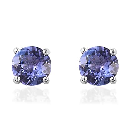 2 Piece Set - Tanzanite Pendant With Chain (Size 18) and Stud Earrings (with Push Back) in Platinum Overlay Sterling Silver 1.50 Ct.