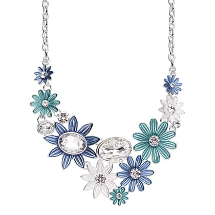 Simple yet beautiful, this set of floral necklace and earrings is a mesmerizing pair of jewels designed to grace your look. The design of the necklace is inspired by a floral theme. The jewels are decorated with white Austrian crystals and simulated diamonds in the centre of the flowers adding sparkle and shine to the piece. The stud earrings have glossy enamelling with a push-back fastening. This pair of gorgeous necklace and earrings is designed to add an alluring touch to your outfit.
