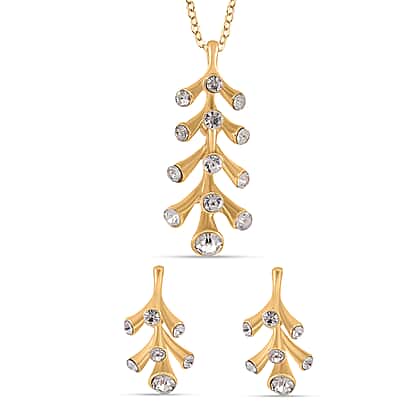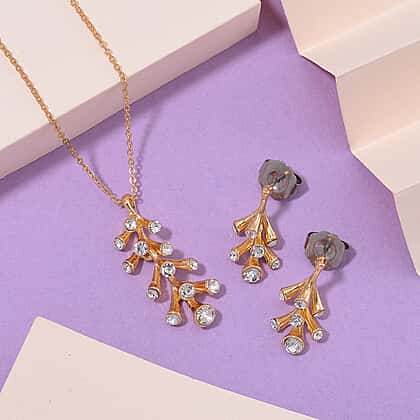 2 Piece Set - White Crystal Necklace and Earring with Push Back
