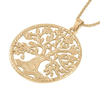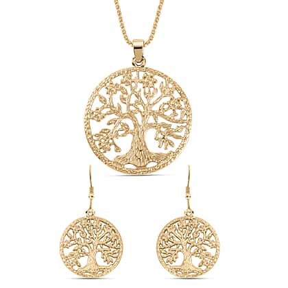 2 Piece Set- Gold Plated Tree of Life Earrings and Pendant with Chain (Size 28)