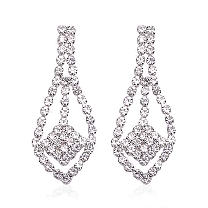 2 Piece Set White Austrian Crystal Earrings (with Push Back) and Necklace (Size 22 with 2 Inch Extender) in Silver Tone - Waterfall