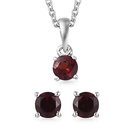 3 Piece Set - Mozambique Garnet Pendant with Chain (Size 18) and Stud Earrings (with Push Back) in Platinum Overlay Sterling Silver 1.75 Ct.