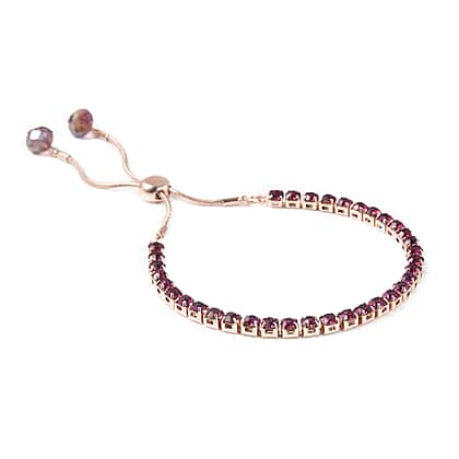 3 Piece Set Magenta Crystal Earrings, Bracelet and Necklace in Rose Gold Tone