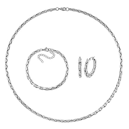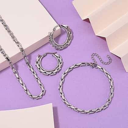 3 Piece Set - Panther Link Necklace (Size 20-2) Bracelet (Size 7.5-2) & Earrings with Clasp