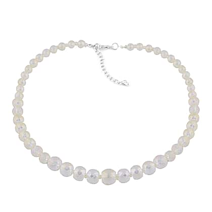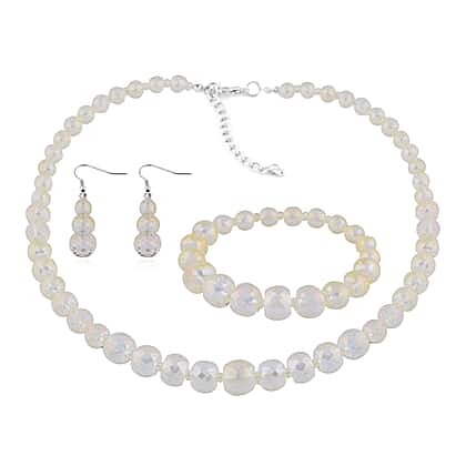 3 Piece Set - Simulated Champagne Topaz Beaded Necklace (Size 20 with 3 inch Extender), Stretchable Bracelet (Size 6.5) and Hook Earrings in Silver Tone