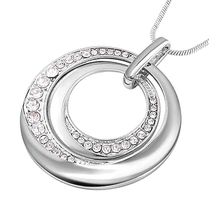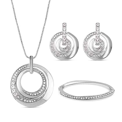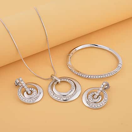 3 Piece Set - White Austrian Crystal Bangle (Size - 6.75 ), Necklace (Size - 24 With 2 Inch Extender) and Earrings (With Push Back) in Silver Tone.