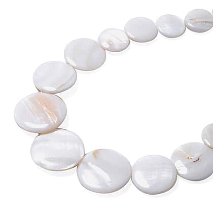 - 7 Flattened shell beads are combined in a stretchable band to form a bracelet