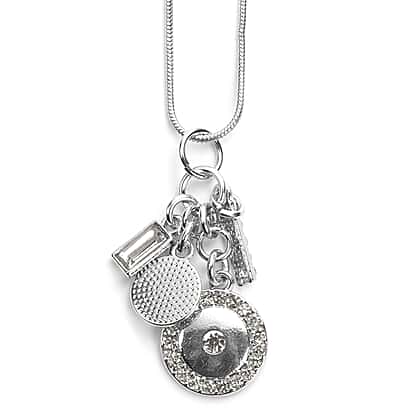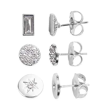 5 Piece Set - White Austrian Crystal and Simulated Diamond Stud Earrings (3 Pcs), Stretchable Bracelet with Charms (Size 7.5) and Pendant with Chain