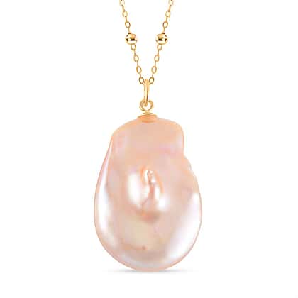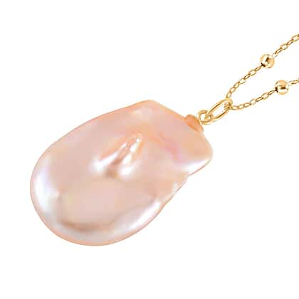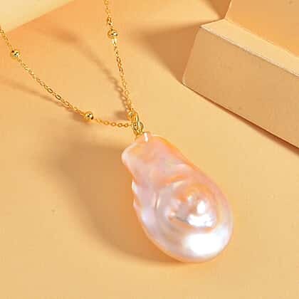 5th Avenue Closeout - Multi Colour Baroque Pearl Pendant with Station Chain (Size - 20 ) in Gold Overlay Sterling Silver