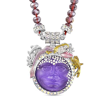 AB Crystal and Simulated Purple Topaz Moon Necklace (Size 22) in Silver Tone