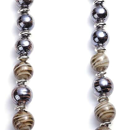 Black Murano Bead, Grey Murano Bead Hook Earrings, Stretchable Bracelet (Size 7) and Necklace (Size 20 with 3 inch Extender) in Stainless Steel