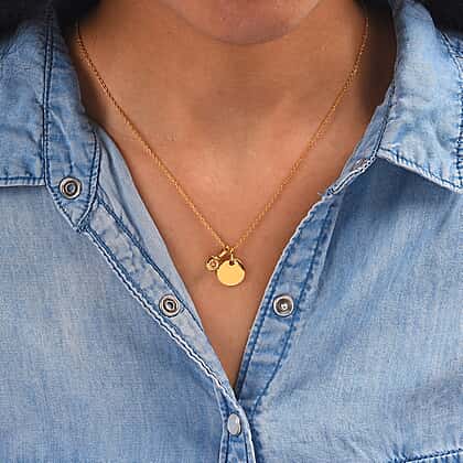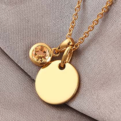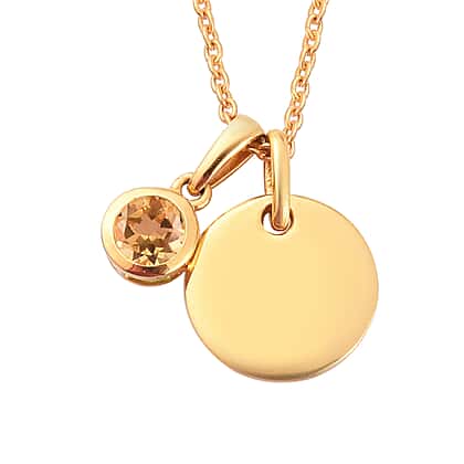0.38 Ct. Brazilian Citrine 2 Pcs Disc Solitaire Pendant with Chain in Gold Plated Sterling Silver