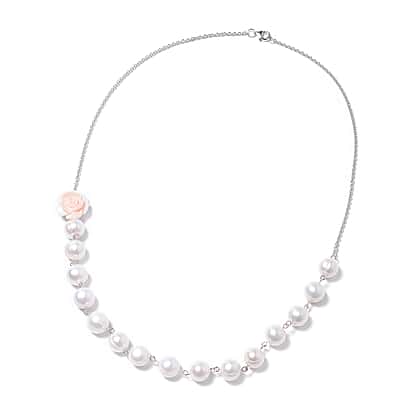 Jardin Collection - 2 Piece Set - Freshwater Pearl and Pink Mother of Pearl Necklace (Size 20) and Hook Earrings in Rhodium Overlay Sterling Silver, Silver wt 5.00 Gms