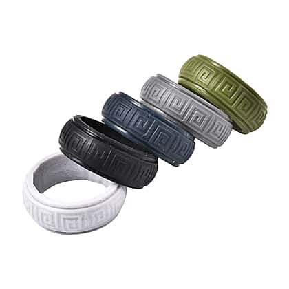 MP Set of 5 - Silver, Dark Grey, Dark Blue, Black and Olive Colour Band Rings (Size X)