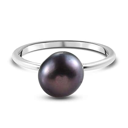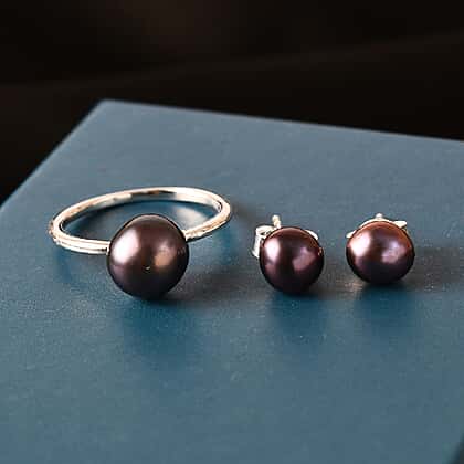OTO - 2 Piece Set - Fresh Water Peacock Pearl Solitaire Ring and Solitaire Stud Push Post Earring Sterling Silver 7.25 ct 7.250 Ct.