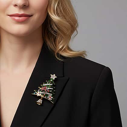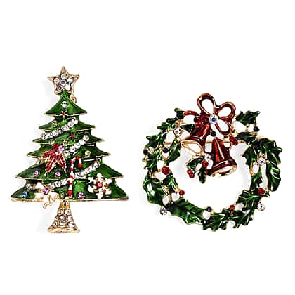 Set of 2 - Multi Colour Crystal Brooch in Yellow Gold Tone with Enameled