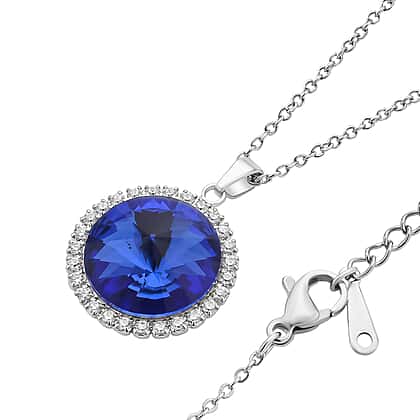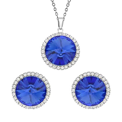 These charming-looking simulated tanzanite and white zirconia earrings and pendant with chain set will add a beautiful tone to your attire. These easy-on-pocket simulated gemstone jewellery sets will become your favourite daily wear in no time. Made with pure white brass, the circular shape of the pendant and earrings gives you a prominent look and can be easily carried with casual wear. The round free-faceted cut of the simulated tanzanite is set in the centre, with the round faceted-cut cubic zirconia making a halo around it. The overall sparkle of this set of earrings and pendant creates a charming lustre and can become a lovely gift for someone special.
