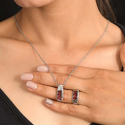 Set of 2 - EverTrue Red Garnet Ring & Pendant with Chain (Size 20) 3.27 Ct.