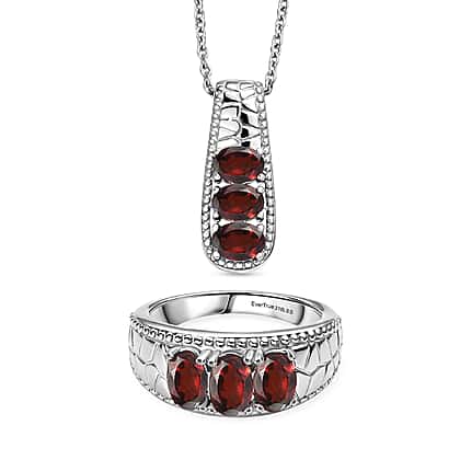 Set of 2 - EverTrue Red Garnet Ring & Pendant with Chain (Size 20) 3.27 Ct.