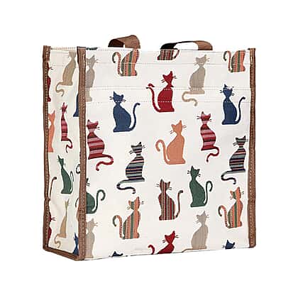 Signare Tapestry - 2 Piece Set - Cheeky Cat Shopping Bag (30X13X29cm) and Umbrella in Beige