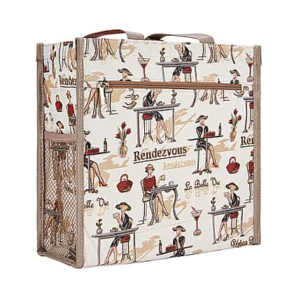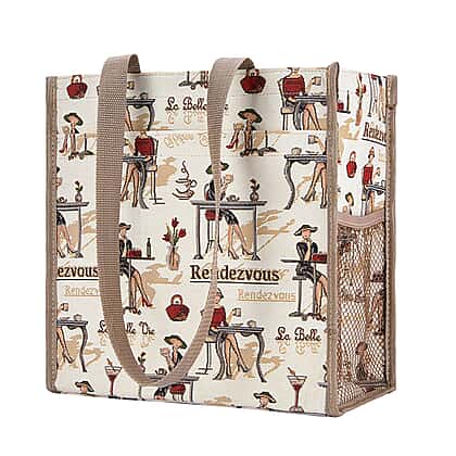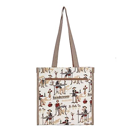 Signare Tapestry - 2 Piece Set - Rendezvous Shopping Bag (17X6X22cm) and Umbrella in Beige