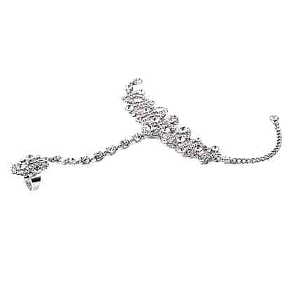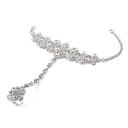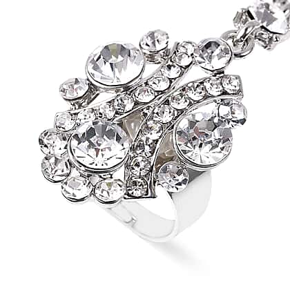 White Austrian Crystal Bohemian Design Ring Bracelet in Silver Tone 6.5 with 3 Inch Extender
