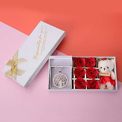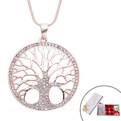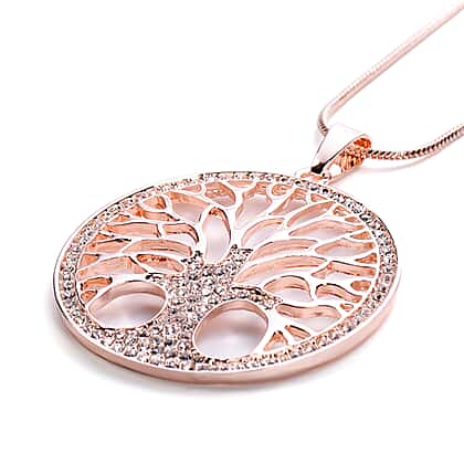 White Austrian Crystal Tree-of-Life Pendant with Chain in Rose Gold Tone
