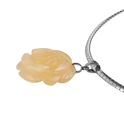 2 Piece Set 50 Ct Yellow Jade Necklace 18 with 2 inch Extender and Flower Pendant in Stainless Steel