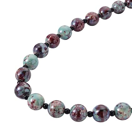 Blue Color Ceramic, Black Glass Necklace (Size - 22 with 2 inch extender)