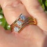 2-carat trilogy moissanite ring: features three stones as a reflection of the past, present, and future of a relationship. Also, a 2-carat engagement moissanite ring is a perfect choice for special events.