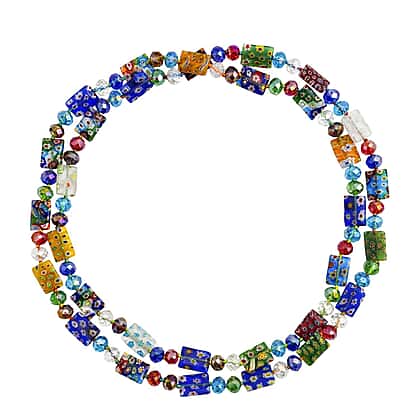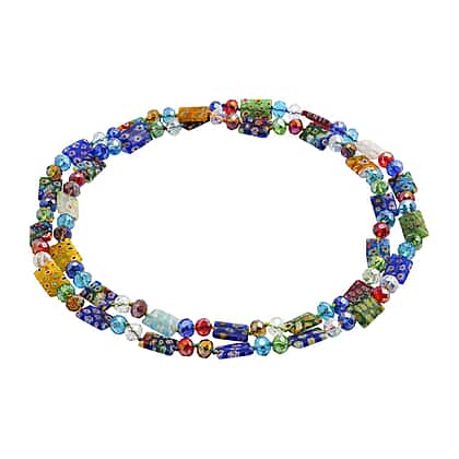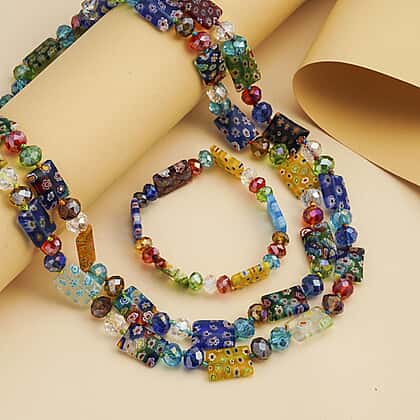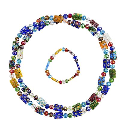 2 Piece Set - Multi Colour Murano Style Glass Beads Necklace (Size 46) and Bracelet (Size 7 Stretchable)