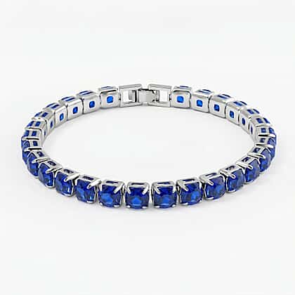 3 Piece Set of Blue Sapphire Crystal Bracelet (7.5 Inch) with Bracelet Buddy and Bracelet Box 70.00 Ct.