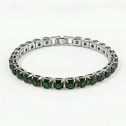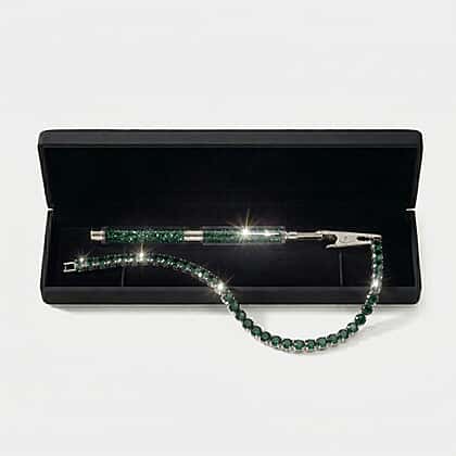 3 Piece Set - Green Crystal Bracelet (Size 7.5) with Bracelet Buddy & Bracelet Box in Silver Tone 70.00 Ct.