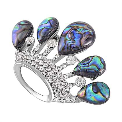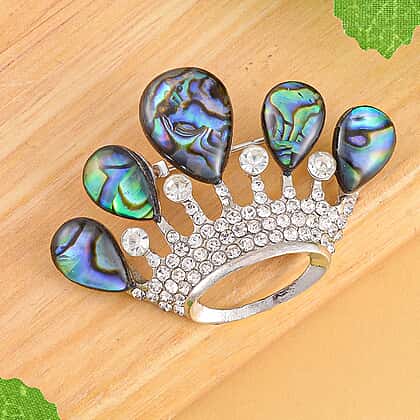 Abalone Shell and White Austrian Crystal Crown Brooch