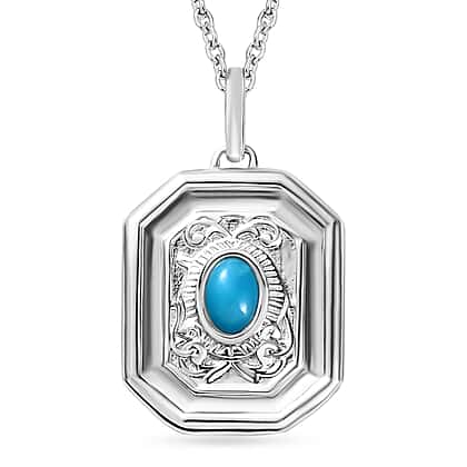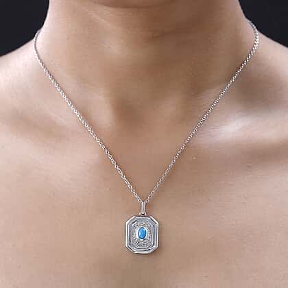 Arizona Sleeping Beauty Turquoise Solitaire Pendant in Platinum Overlay Sterling Silver with Chain (Size 20)