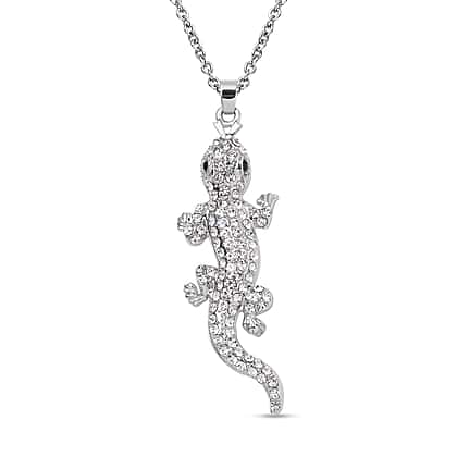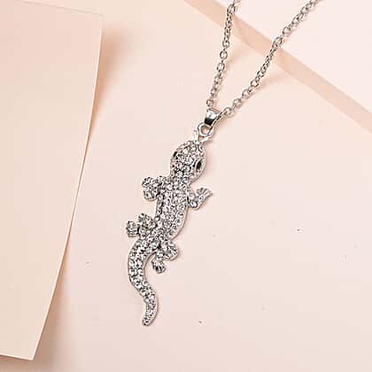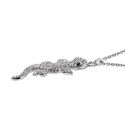 Austrian White & Black Crystal Lizard Necklace (Size - 24) in Silver Tone