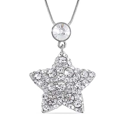 Austrian White Crystal Star Necklace (Size - 28) in Silver Tone