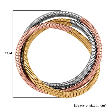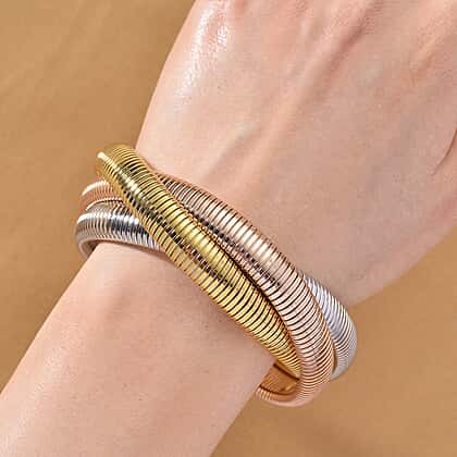 Designer Inspired - Triple Layer Bangle (Size 7.5 Stretchable) in Tritone