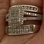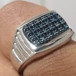 Beautiful ring. Bought for my pinky finger. Well proportioned and sits comfortably. Platinum overlay gives a hint of class... whilst x24 genuine blue diamonds give a subdued sparkle. I wear as a dress ring for when I've got my fancy suit and fancy watch! Not sure I have the flair to wear on the daily lol All in all, excellent ring with subtle class without being too overpowering. Excellent choice for the discerning modern gentleman or lady who has it all but wishes to remain classy!