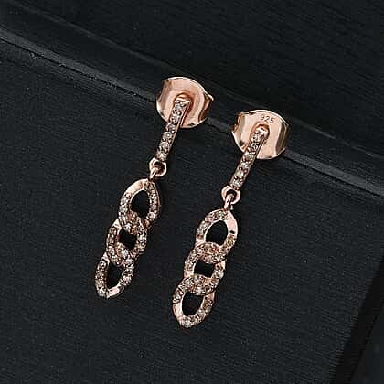 Champagne Diamond Earring with Push Back in 18K Vermeil Rose Gold Plated Sterling Silver 0.25 Ct