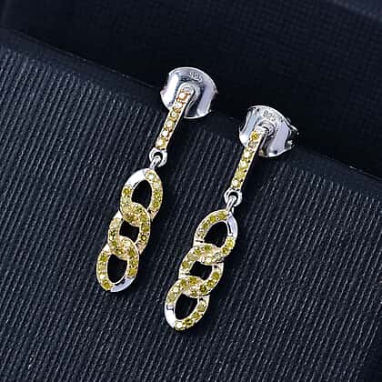 Yellow Diamond Curb Chain Earring with Push Back in Rhodium Overlay Sterling Silver