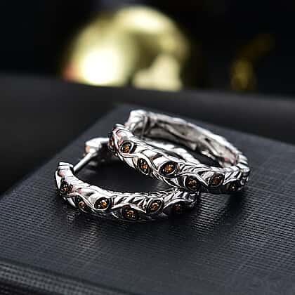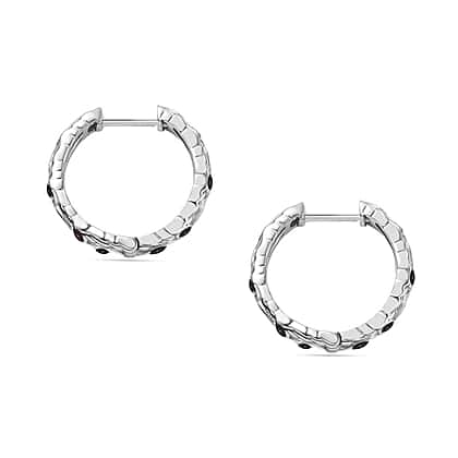Vine-Inspired Red Diamond Hoop Earring with Clasp in Rhodium Overlay Sterling Silver