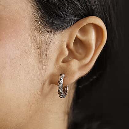 Delicately entwined in a vine-inspired design, these vine-inspired red diamond hoop earrings combine nature’s fluid beauty with luxurious sparkle. The deep red diamonds glimmer with rich fire and warmth, symbolising passion and strength. Each diamond is durable, scratch-resistant, and beautifully faceted for lasting brilliance. The hoops are crafted with rhodium overlay on sterling silver, offering a glossy, hypoallergenic finish that resists tarnish and stays kind to sensitive skin. Their secure clasp keeps them comfortably in place, adding effortless sophistication to any look—day or night.