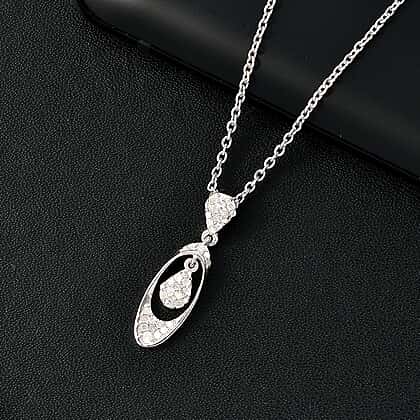 Diamond Pendant with Chain (Size - 20) in Rhodium Overlay Sterling Silver